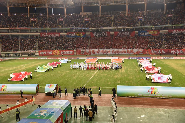 (长沙学院后生志愿者在湘超四分之一决赛现面目影,张栖溶摄)
