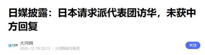 1.《日媒线路:日本央求派代表团访华,未获中方回复》2025-12-19 22:13 | 开头:大河网